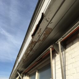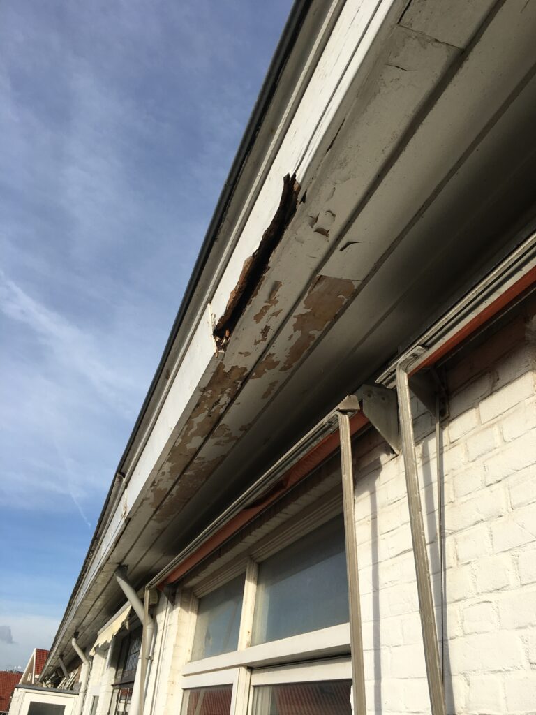 De bovenliggende zinken bakgoot hebben wij dan ook gerepareerd.
