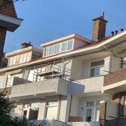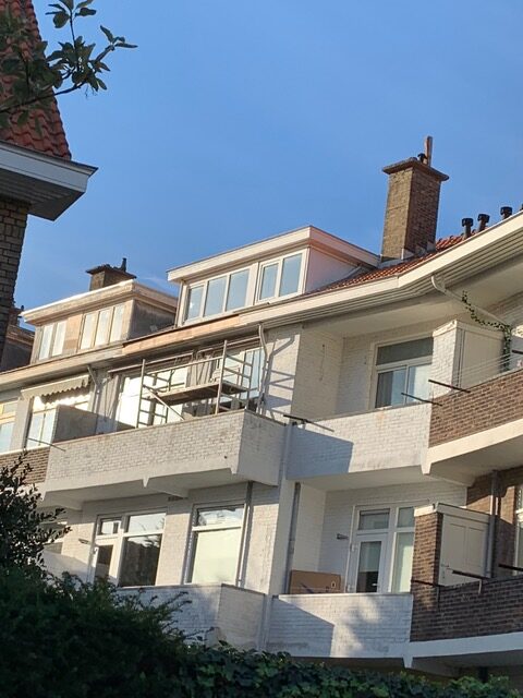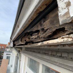 De in het overstek dragende balk is vervangen en het slechte overstek hout is vernieuwd.