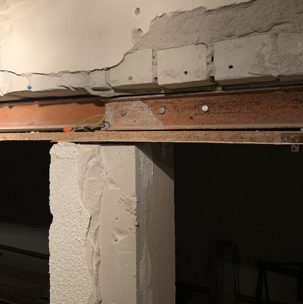 De enige keuze was om de gehele muur te verwijderen en een goede constructie te plaatsen.
