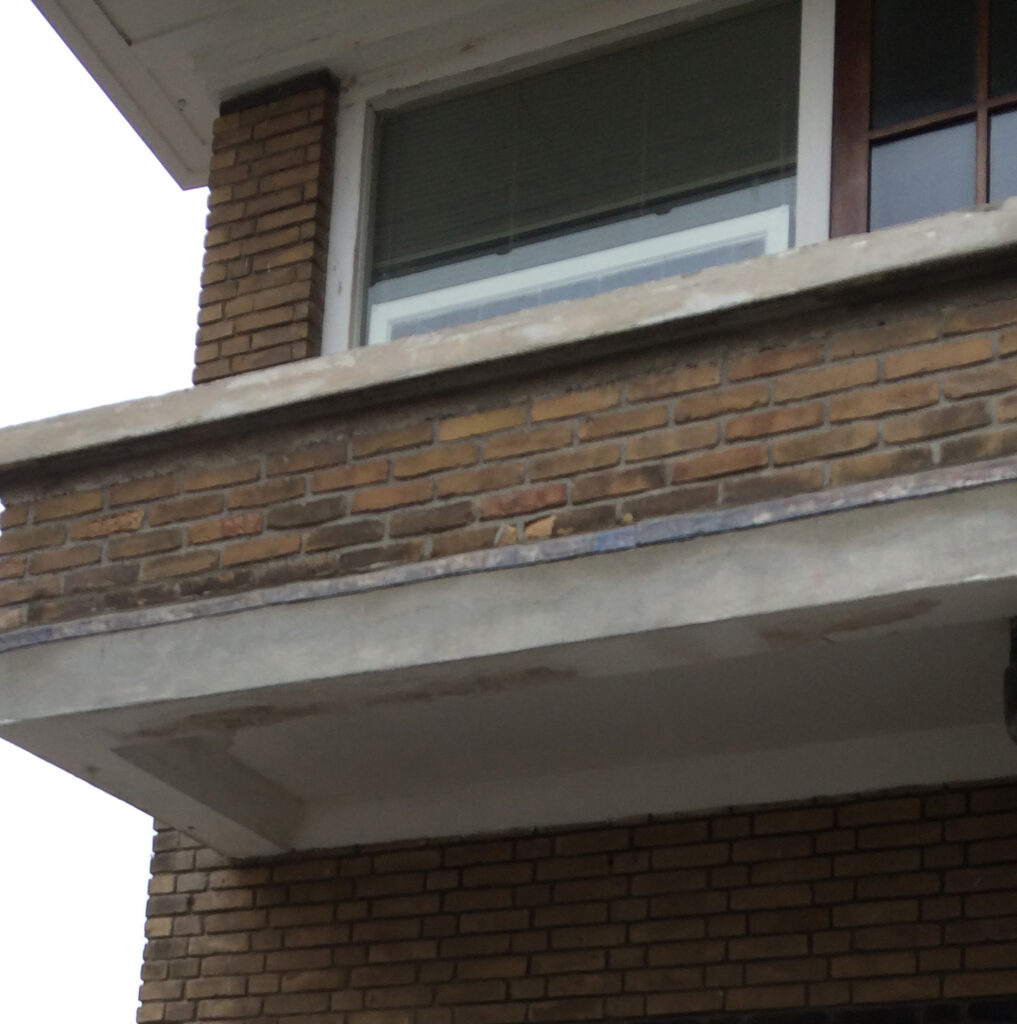 Het beton van het balkon vertoonde scheuren en losse stukken.