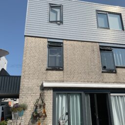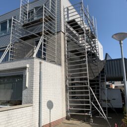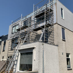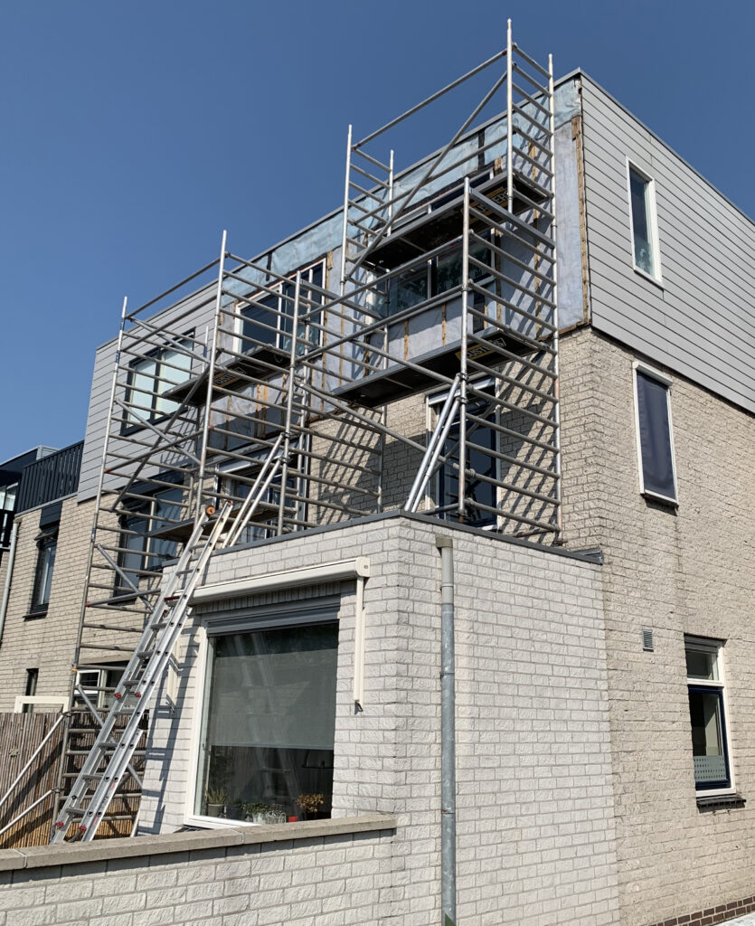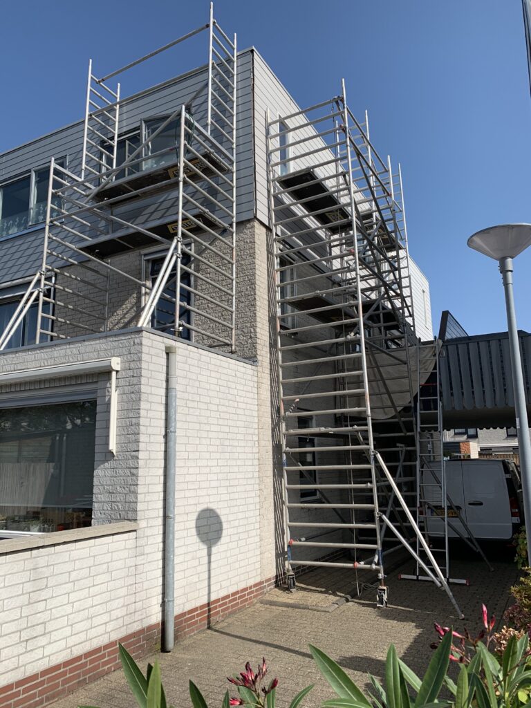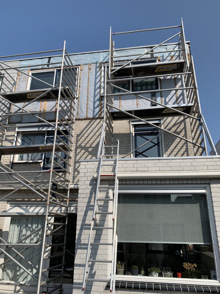 Na het plaatsen van steigers en het verwijderen van de bestaande betimmering zijn er nieuwe kunststof delen gemonteerd zodat het weer een mooi geheel is en jarenlang mee kan.