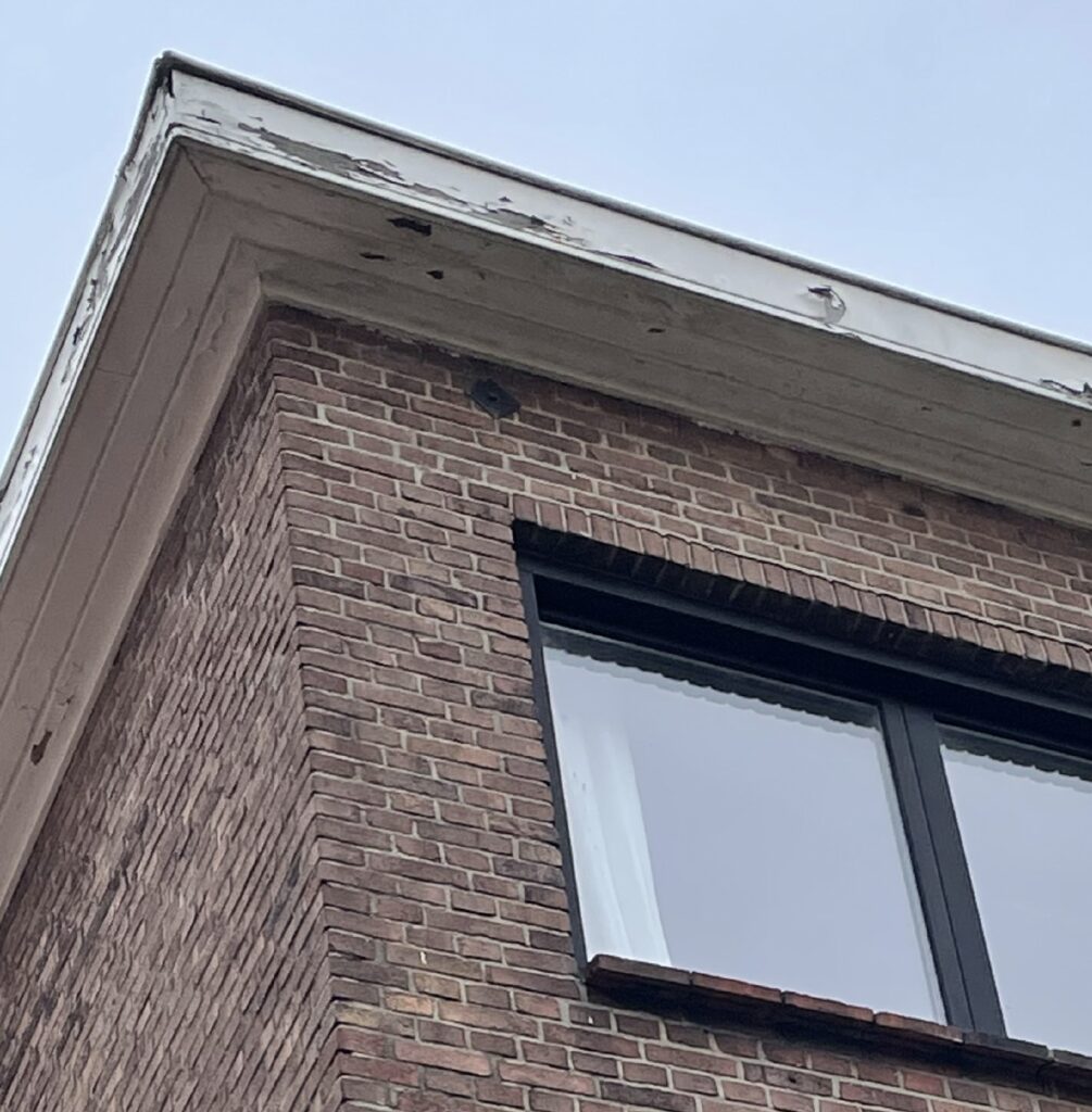 Aan de dakrand bovenaan de uitbouw was duidelijk te zien dat de kwaliteit van de boeidelen slecht was.