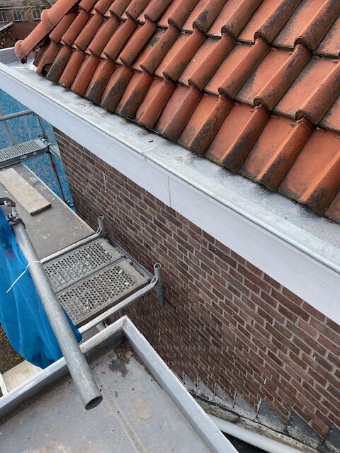 De oude zinken bakgoot is gelijkertijd vervangen.