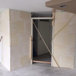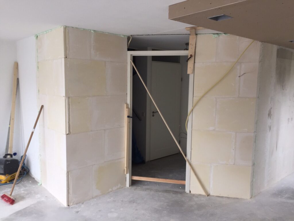 De bestaande gangmuur hebben we deels verwijderd en met het metselen van een nieuw gepositioneerde muur heeft het de woonkamer ingang verbeterd zo ook de keuken doorgang langs de te plaatsen bar.