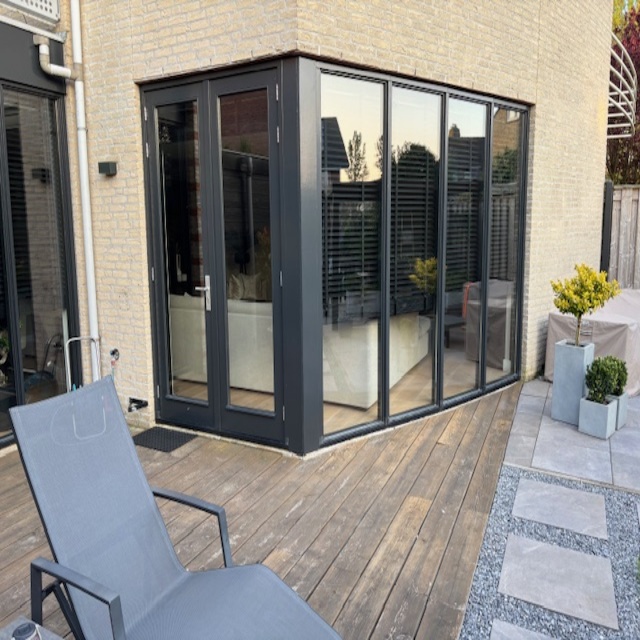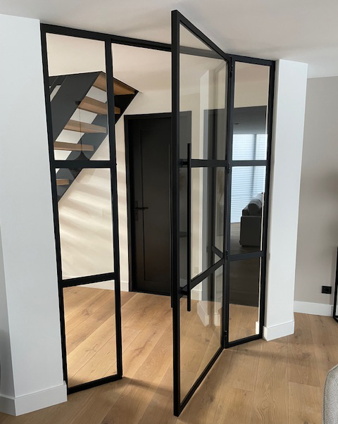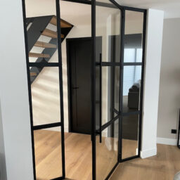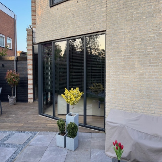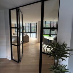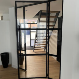De nieuwe woonkamer ingang met stalen deur maakt dit project totaal af met een oogstrelend resultaat.