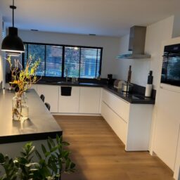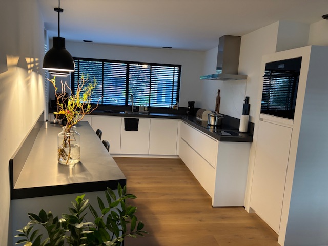 Indeling van de woning is dusdanig gewijzigd dat er meer ruimte in de keuken is ontstaan doordat het toilet is verplaatst naar elders.