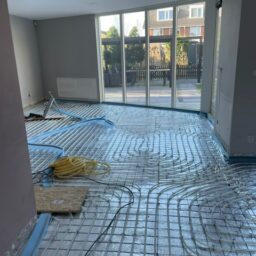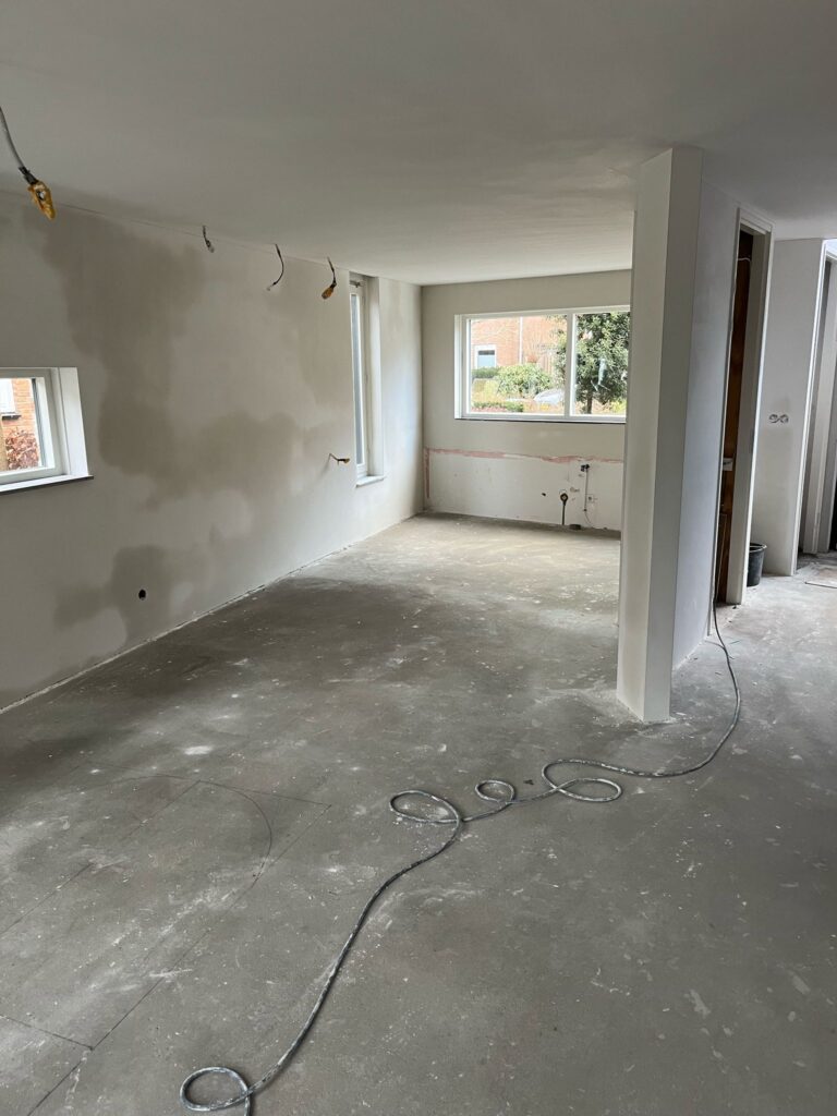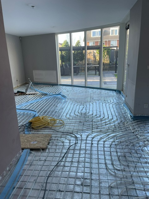 De totaal afgehakte vloer is voorzien van vloer verwarming.