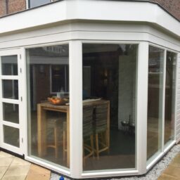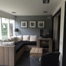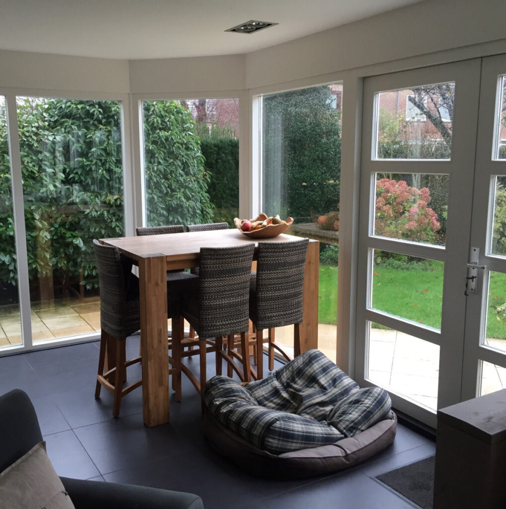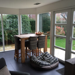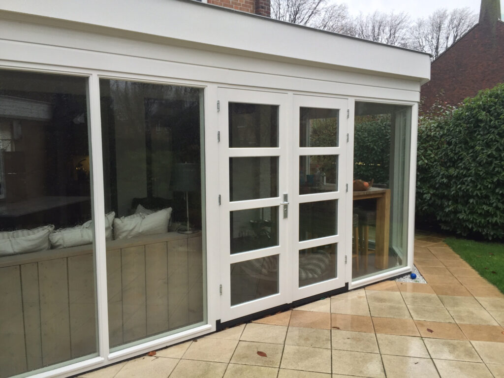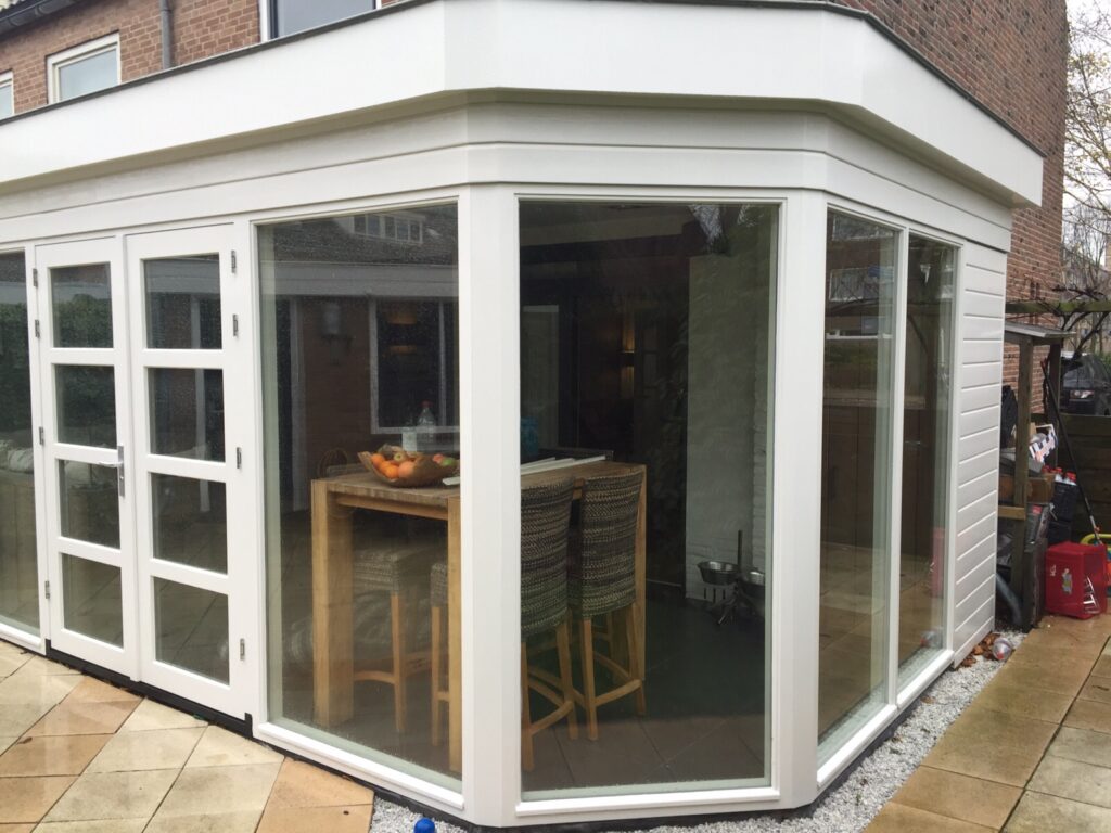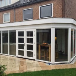Door de grote glaspartij geeft deze uitbouw een heerlijk contact met de tuin en via de twee openslaande deuren krijg je een grandioos buiten gevoel.