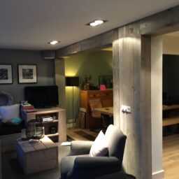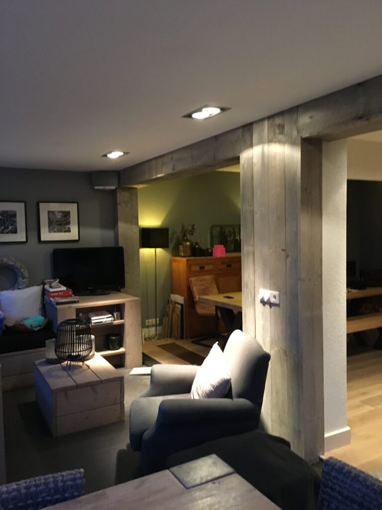 De bestaande kozijnen werden uit de achtergevel verwijderd terwijl de rest intact is gebleven en met een nieuw plafond en wand betimmering heeft het de juiste sfeer gekregen.