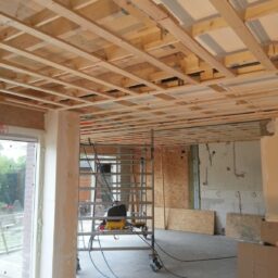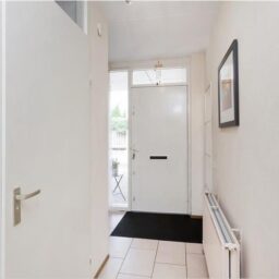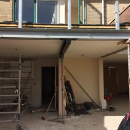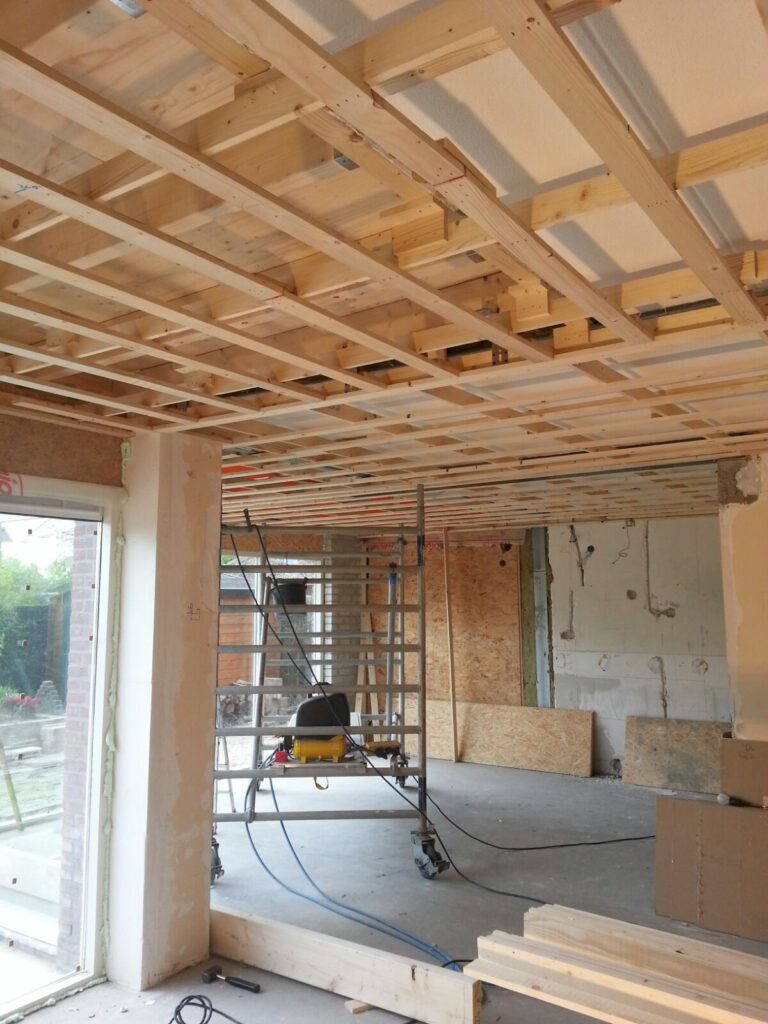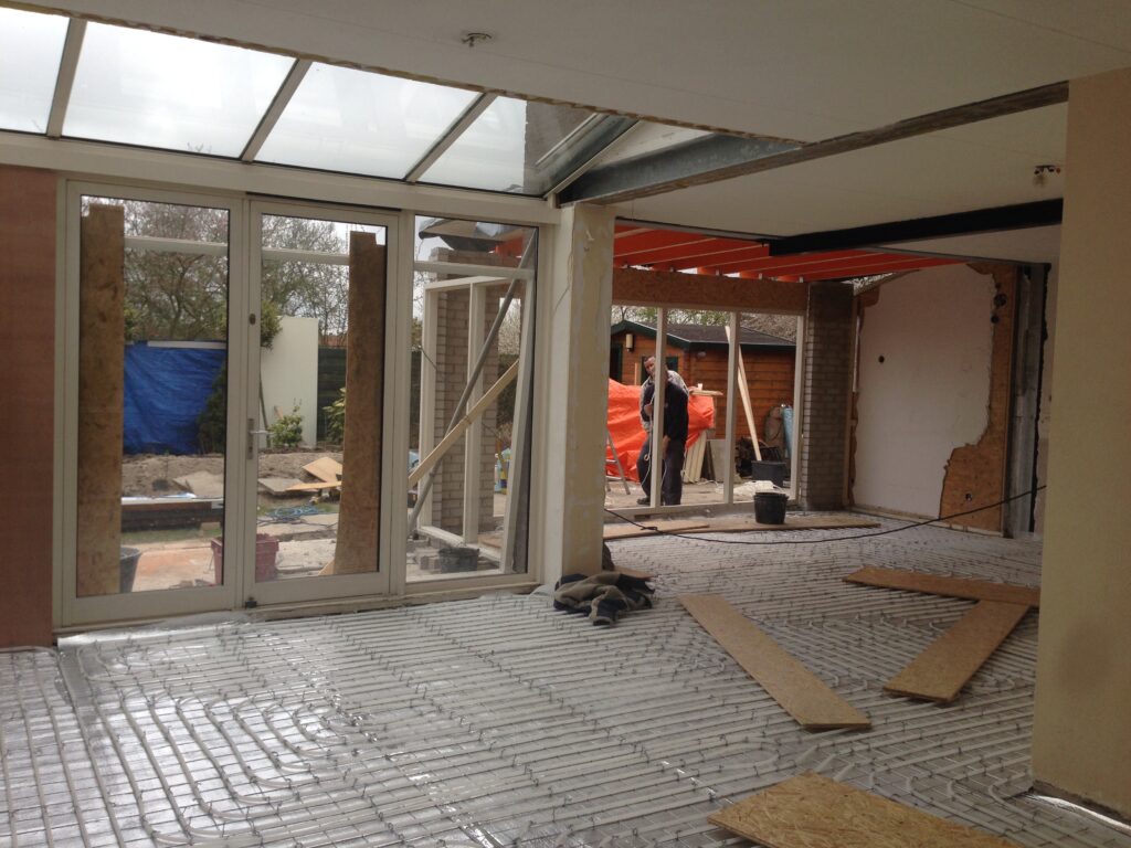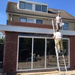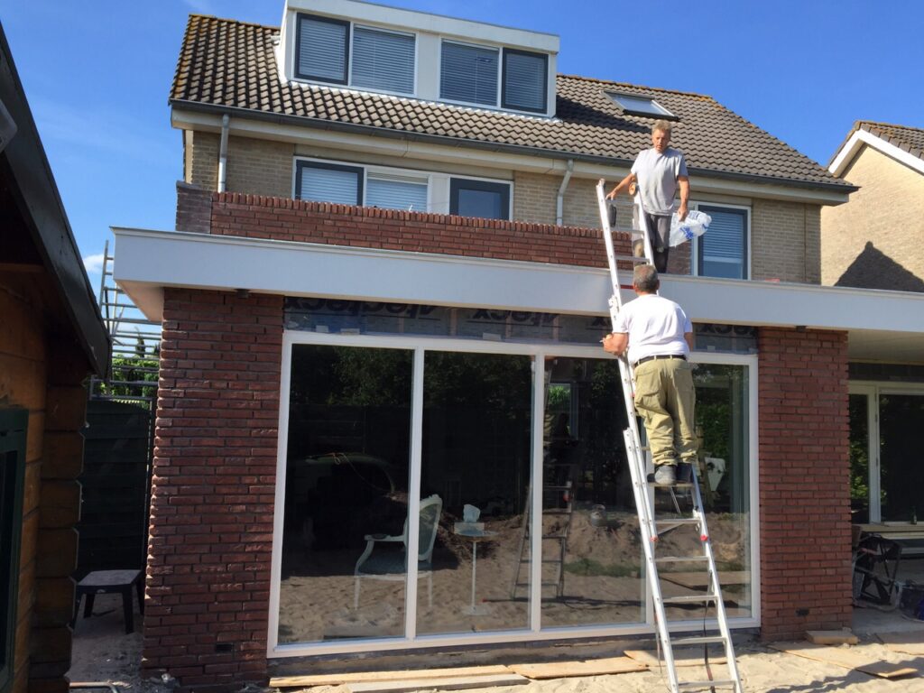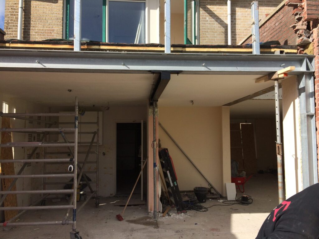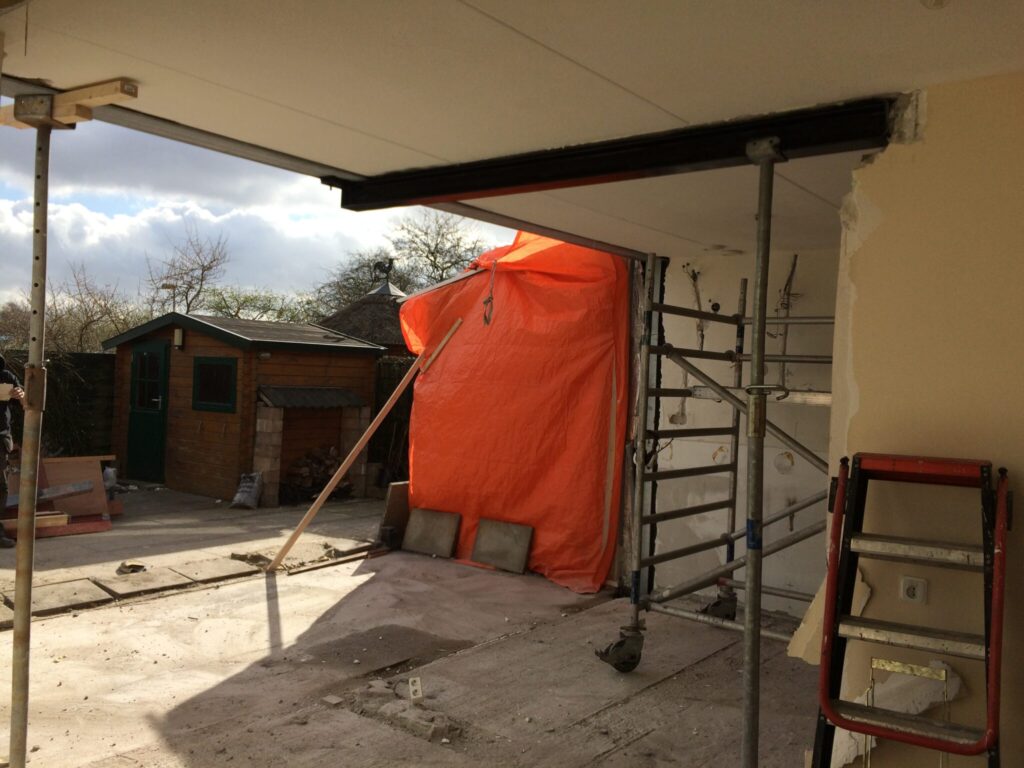 In de achtergevel zijn hard houten kozijnen met iso glas geplaatst en het plafond is tot een geheel gemaakt.