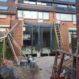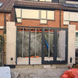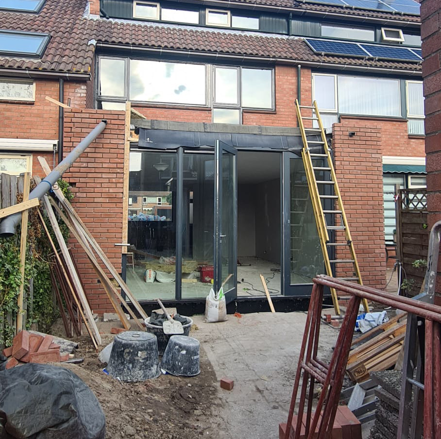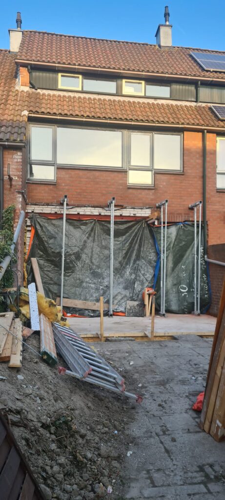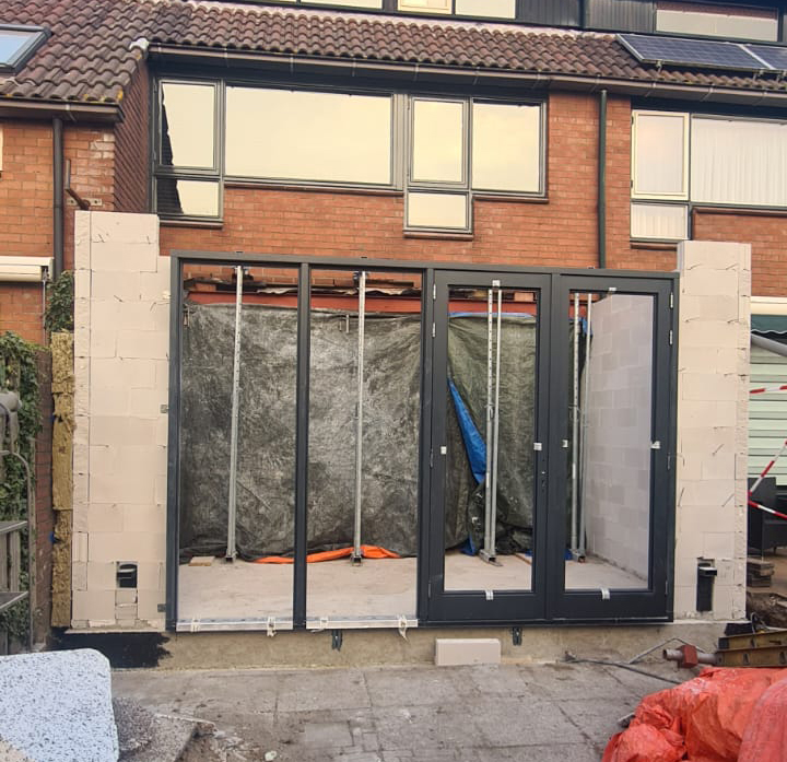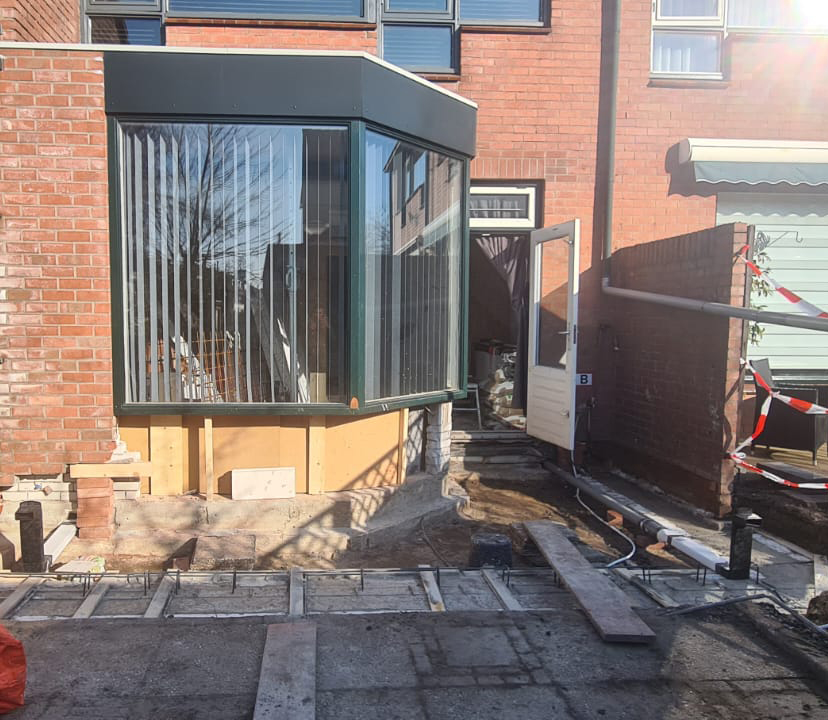 De lichte stalen constructie van de uitbouw is vervangen door een zwaardere welke over de volle breedte geplaatst is.