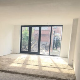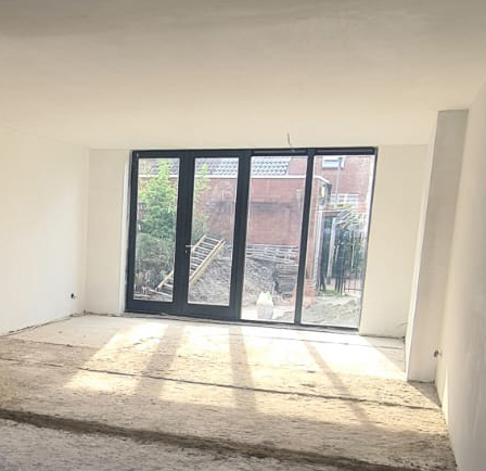 Een doorlopend plafond geeft een groter gevoel in de living en met de afwerking aan de buitenzijde welke voorzien van zinken hemel water afvoeren is het resultaat fantastisch te noemen.