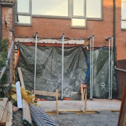 Door palen te heien en een fundering rondom de uitbouw te plaatsen is er een basis gemaakt voor een volwaardige aanbouw.